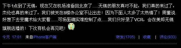 当时周杰伦去无锡的美邦店见粉丝,因为人太多而没上台,愤怒的粉丝由于没看见偶像,差点没把店给砸了。