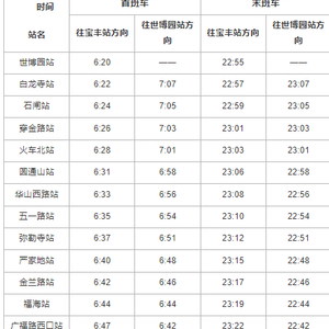 世博园站至宝丰站方向为:6:20—22:55