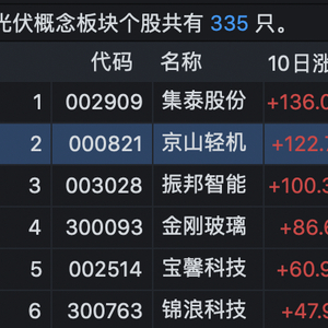 财联社6月28日讯(编辑 俞琪)光伏异质结电池热度延续,京山轻机上午再度封住涨停直至收盘,近9个交易日录得7个涨停。公司股价近10日涨幅达123%,在其所属的光伏概念板块中位列第二,仅次于集泰股份。