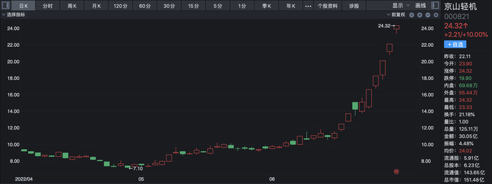 拉长时间来看,京山轻机股价近两个月内累计最大涨幅已达242.54%。