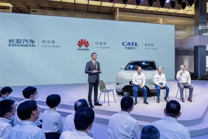 三位轻松拿捏中国汽车行业半条血脉的男人:宁德时代董事长曾毓群,华为轮值董事长徐直军,长安汽车董事长朱华荣,同时出现在一场发布会上是种什么体验?