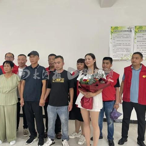暴雨阻碍了行程,直到上午10时许,越野车方才抵达谢福兰所在的村子,村委会门口已聚集了不少迎接的人群,屋内也挂起了“37年相思苦,迎接亲人重相聚”的红色横幅。