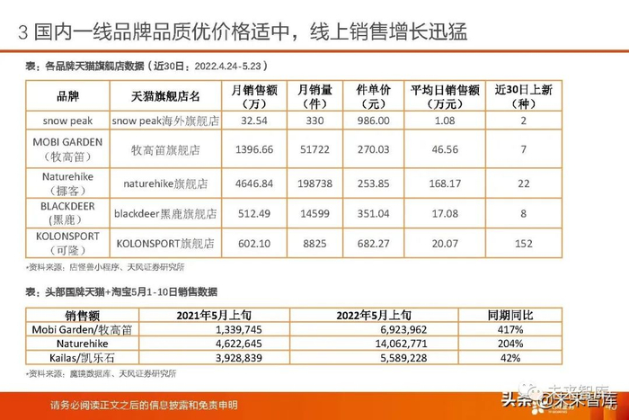 3、国内露营装备呈品牌化集中化趋势,一线国牌竞争优势显著