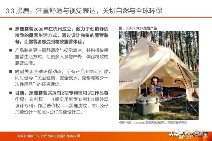 黑鹿露营2008年在杭州成立,致力于创造舒适 精致的露营生活方式,通过设计完备的露营装 备,让露营者感受到精致露营体验。