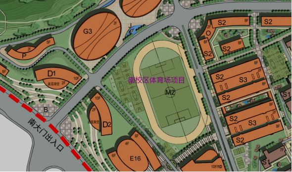 南校区体育场项目用地位于南校区场地内,作为南校区的主要学生体育运动场地,项目建设内容包括:400米标准跑道、看台、羽毛球场、室外篮球场、网球场等,项目总投资预计约8000万元。