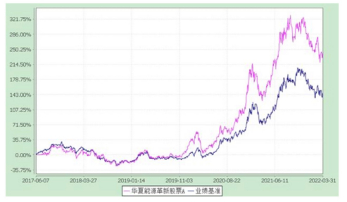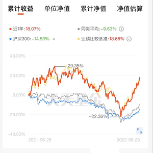 其次,在有明确投资方向时,选择同类中表现更好的基金。当我们已经有了比较明确的投资方向比如新能源板块或半导体板块,可以通过对比基金收益走势图来筛选。通过和沪深300指数走势线或同类基金业绩平均走势线的对比,大致能判断出这只基金的超额收益情况以及在同类产品中所处的位置,筛选出超额收益显著、在同类中处于领先位置的绩优基金。