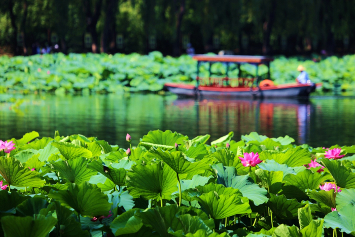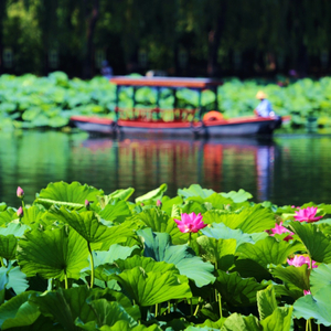 紫竹院公园:荷塘内荷花品种丰富,七八月份进入盛花期,有‘白洋淀红莲’‘友谊牡丹莲’‘舞妃’‘红芍药’‘白芍药’‘大洒锦’等40余个品种。花展期间,通过环境布置、民俗文化、科普讲堂、互动活动四大部分,游客可探索竹荷文化的魅力。