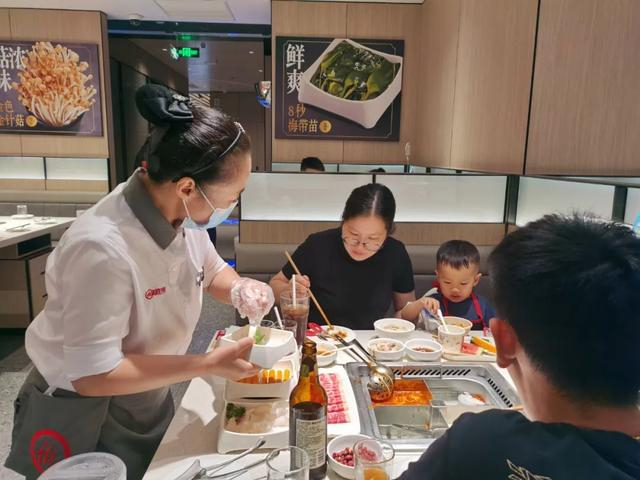 相关负责人告诉记者,历经数月的苦苦支撑后,终于等到恢复堂食的这天了,看到了曙光。记者看到,店内的上座率不错,开放的一半以上桌数都已满员。顾客们聚餐、聊天,欢声笑语,热闹非凡。“我们一家人很久没有出来到外面堂吃了,所以今天很早就来这里,想念这里的味道,吃火锅氛围感也很好。”瞿小姐说。