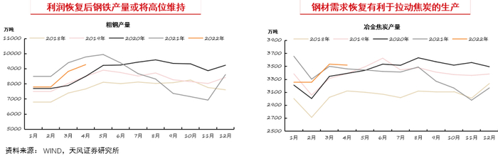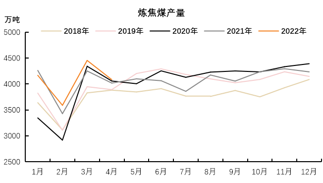 生产无弹性:由于国内煤矿增产保供主要以动力煤为主,因此炼焦煤煤矿产能核增相对较少,预计2022年炼焦煤产量同比微增1000万吨左右,