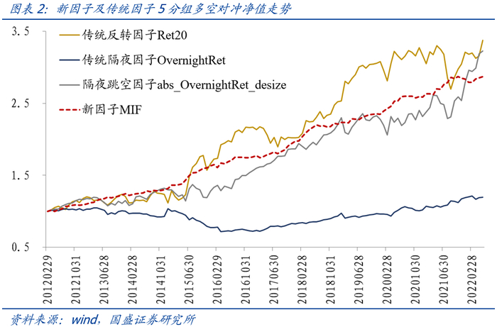 (3)更进一步,考虑到我们想要提供的是已有研究以外的增量信息,因此再正交隔夜跳空因子,取残差,定义为新因子MIF(Market Inefficiency Factor)。
