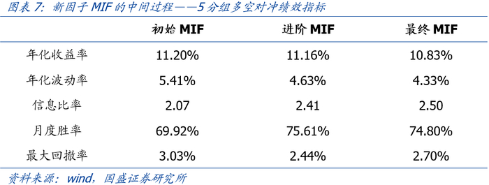 第二步:将“初始MIF”做横截面市值中性化处理,将得到的因子记为“进阶MIF”。