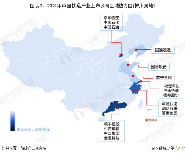 快递行业的上市公司中,顺丰控股、中通快递、申通快递、圆通速递、韵达股份、京东物流、德邦快递、百世集团快递业务遍布全国各地,并且经过多年发展,已经成为快递行业头部企业。