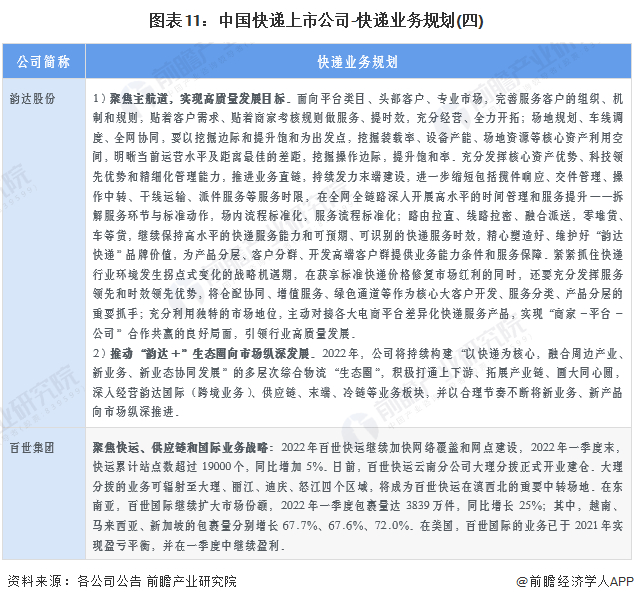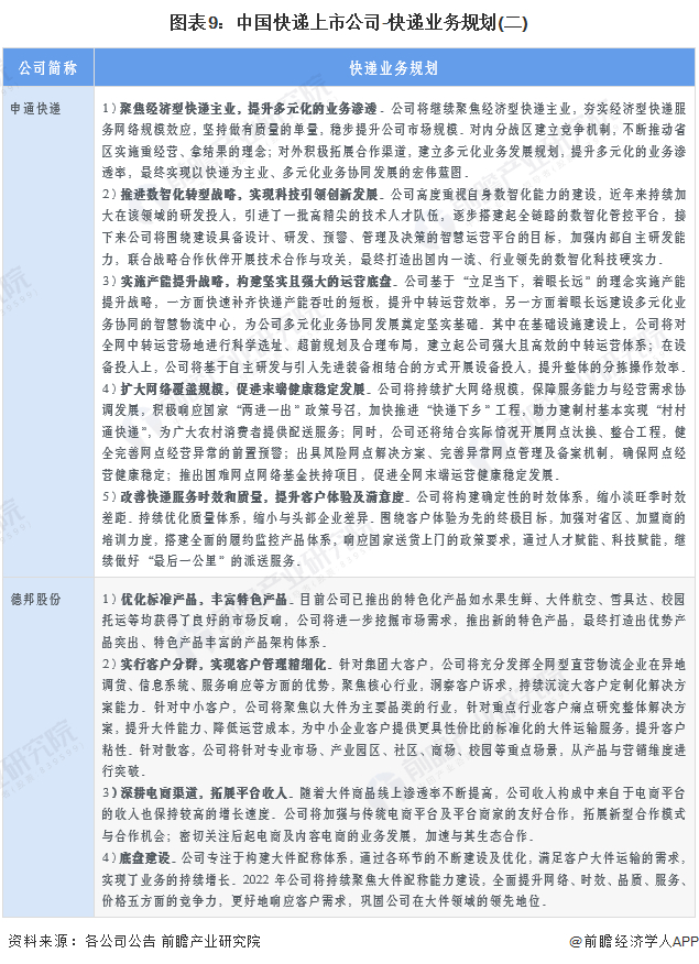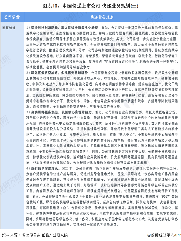 4、快递行业上市公司快递业务规划对比