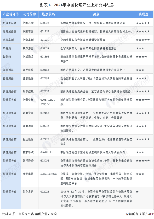 1、快递产业上市公司汇总