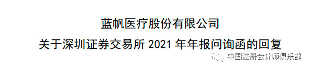 蓝帆医疗股份有限公司(以下简称“公司”、“本公司”或“蓝帆医疗”)于2022年6月2日收到贵部下发的《关于对蓝帆医疗股份有限公司2021年年报的问询函》(公司部年报问询函〔2022〕第453号),现就问询函问题回复如下: