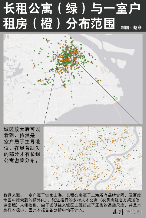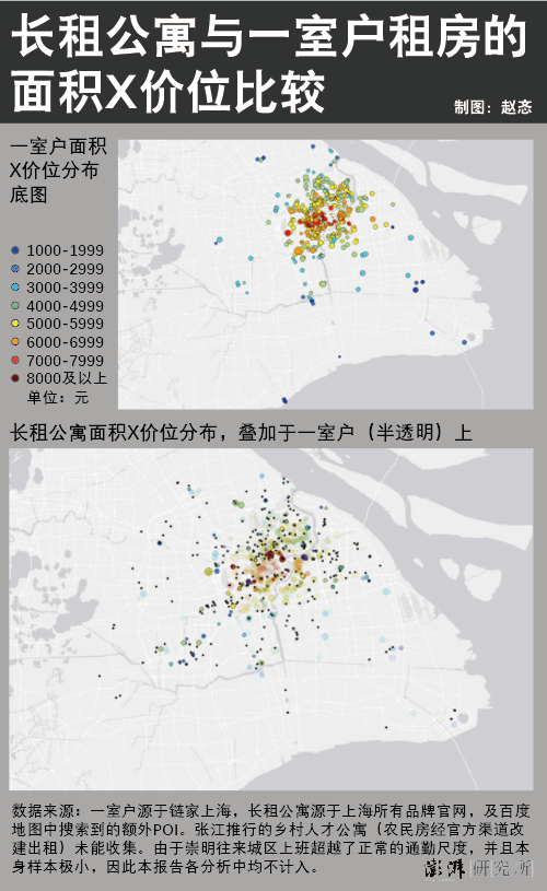 从年轻人对普通住宅的偏好可知,长租公寓并非会因为可以单独居住的特点而被认为是一室户住宅的竞品,相反,它是一室户的补充。如果以上海为案例,通过对比它们的分布和价位,可以看到一种互斥但也互补的关系。