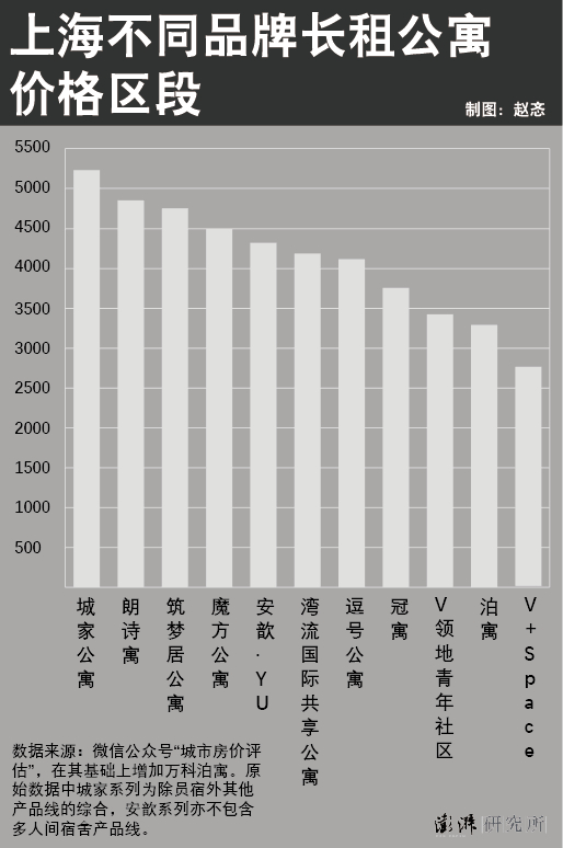 而各大品牌的长租公寓,不考虑面积和区位,实际上在平均价位上,与一室户是相当的。