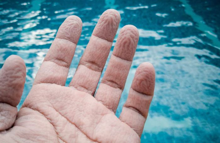 在浴缸里多泡一会,或者在泳池里多游几圈,你的手指就会发生“剧变”。如果手指上的类脊状表皮有轻微螺纹,这些螺纹就会吸饱水分,呈西梅干状,十分丑陋。