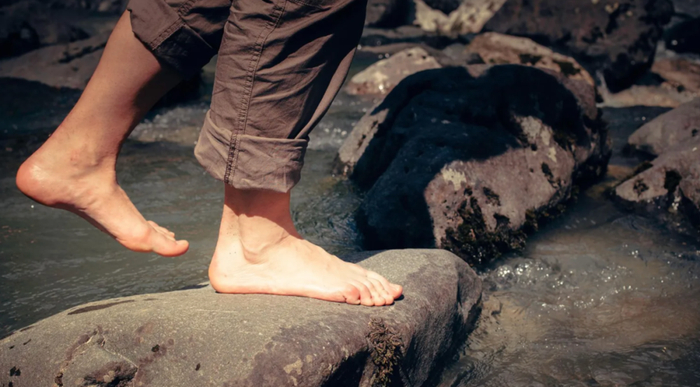 人类祖先走在湿滑岩石上或觅食贝类时,泡水引起的褶皱或许会增加抓地力。© Alamy