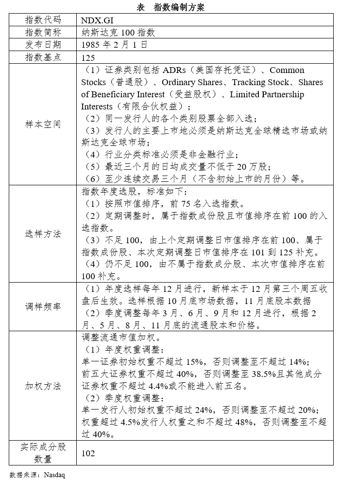 纳斯达克于1985年开始编制,基期1985年2月1日,基点125。指数选择NASDAQ证券交易所挂牌的本地及国际企业中市值前100大的非金融类公司,并依据市值计算权重。结合指数编制方案、成分股、板块定位等,可以看到纳斯达克100指数覆盖信息技术、通信、可选消费、生物科技等高成长高科技领域,包括苹果、微软、亚马逊、特斯拉、英伟达、谷歌、Facebook等全球科技龙头,体量大,创新性强,引领全球科技产业发展,具有较高的长期配置价值。