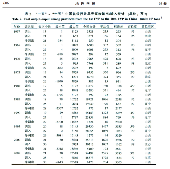 江苏省重化工业的优势在全国也是非常突出的,这从全国省际煤炭的调运也可以看出来。下图来自《地理学报》,在1991年~1995年的八五计划及其之前,辽宁省曾经长期是我国第一大煤炭调入省份,而从九五计划(1996年~2000年)开始,江苏省首次成为了全国第一大煤炭调入省份,占到了全国省际煤炭调入的八分之一,并且在200年~2005年的十五计划期间保持了全国第一大煤炭调入省份的地位,并且全国占比进一步上升到了七分之一。