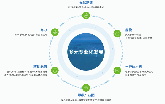 协鑫是中国最大的新能源制造企业了,可以完成光伏从硅粉、硅料、硅片到组件,光伏电站的全流程,同时能生产电子级多晶硅和半导体大硅片,另外具备天然气制氢和风光制氢一体化的能力。