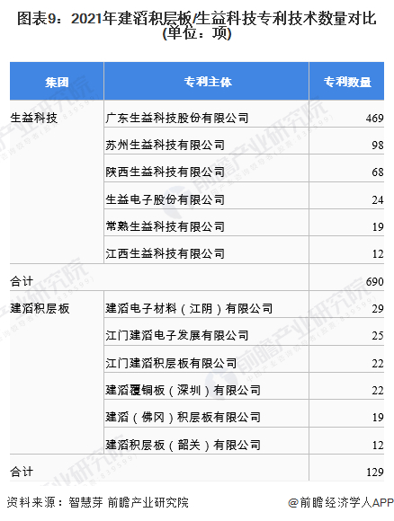 从专利技术数量来看,根据“智慧芽”搜索的记录,生益科技与覆铜板相关的专利技术有690项,建滔积层板的专利数量为129项,生益科技的专利数量是建滔积层板的专利数量5倍以上