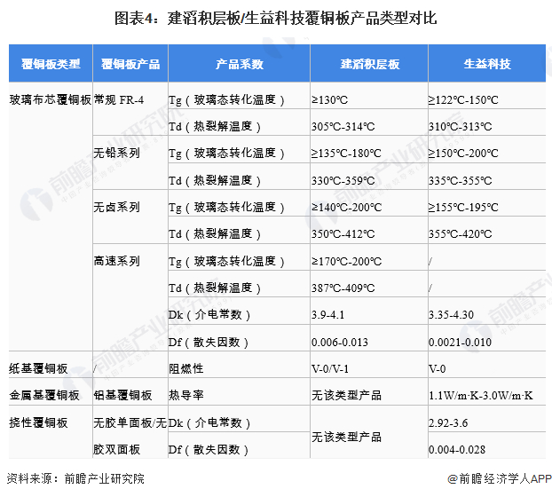 ——覆铜板产品布局:生益科技产品类型更多,产品性能覆盖面更广