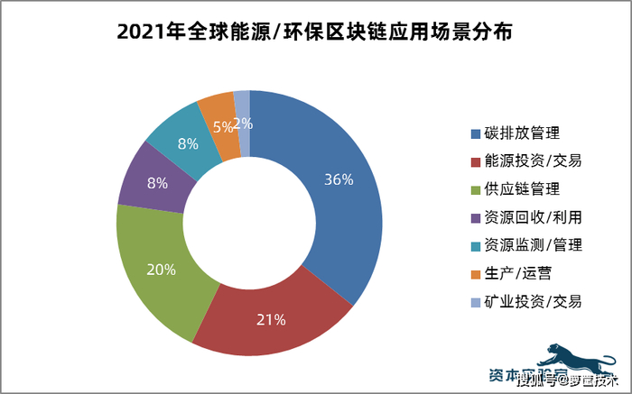 其中,碳排放管理应用占比最高,达到36%;其次是能源投资/交易应用(21%)与供应链管理应用(20%)。