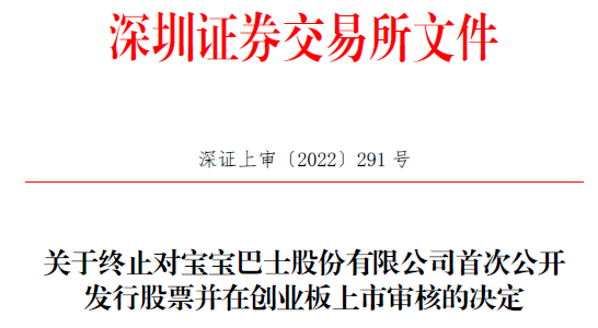深交所表示,宝宝巴士申请撤回发行上市申请文件,根据《深圳证券交易所创业板股票发行上市审核规则》第六十七条,决定终止对其首次公开发行股票并在创业板上市的审核。