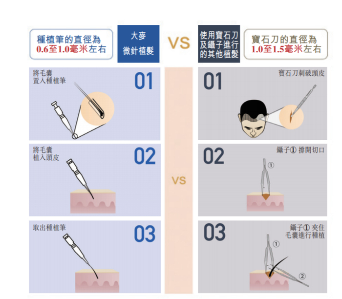 微针技术是大麦植发对外宣传的“亮点”。招股书介绍,目前中国的植发市场以毛囊单位抽取(FUE)植发技术为主,通常使用1.0至1.5毫米的宝石刀在头皮上开切口,并用镊子撑开切口以植入种植物。大麦植发的创始人李兴东在2006年将微针植发技术引入中国,公司为中国首家提供微针植发的医疗集团。该技术利用专有的0.6至1毫米种植笔植入毛囊,可保护毛囊,缩小创口且加快了术后恢复过程。