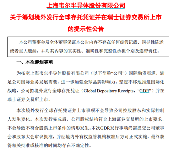 无独有偶,拟境外发行GDR并上市的企业还有韦尔股份。
