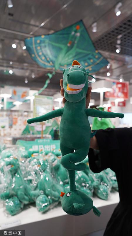 2022年6月28日,兰州,游客在甘肃省博物馆选购“马踏飞燕”文创毛绒玩具。“马踏飞燕”文创毛绒玩具自6月11日上线以来走红网络,玩具独特的外形让很多网友印象深刻,纷纷争相购买。