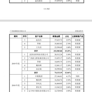 报告期内,扬翔股份的前五大客户集中度较低,且多为猪贩子。招股书披露,猪贩子渠道占扬翔股份生猪产品销售渠道的比例均在60%以上。主要客户分散且多为个体猪贩子,说明扬翔股份的经营尚未形成规模,且抵抗市场风险的能力弱。