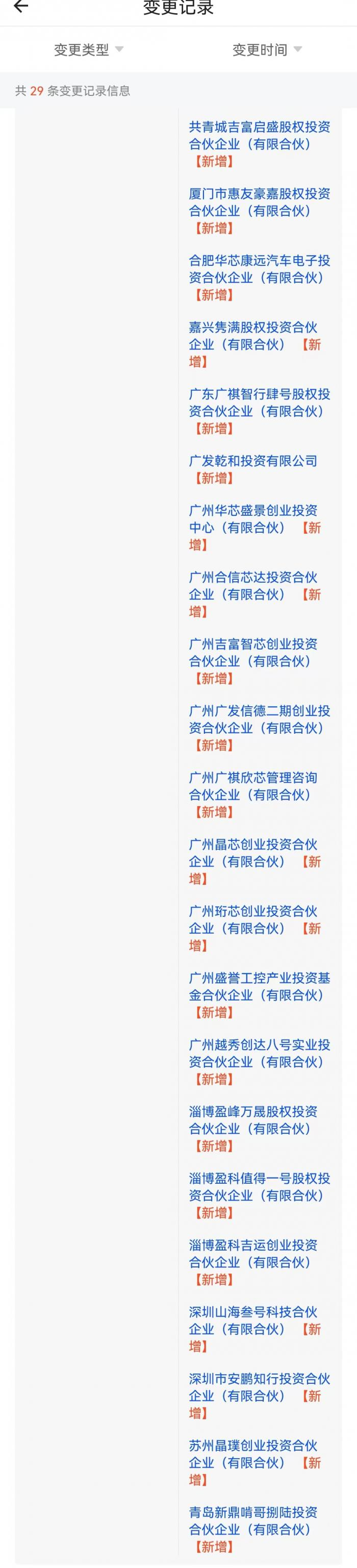 根据启信宝的信息显示,6月28日,粤芯半导体公司的注册资本由16.67亿元变更为21.51亿元人民币,同时新增了22名股东。