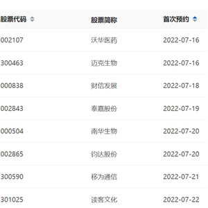 6月30日,深交所上市公司半年报预约披露时间表出炉。沃华医药、迈克生物拔得头筹,将于7月16日率先披露。财信发展将于7月18日披露,泰嘉股份将于7月19日披露,南华生物、钧达股份、移为通信、读客文化紧随其后。