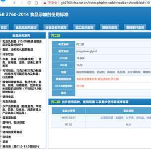 可以看到,丙二醇作为食品添加剂,其添加的范围是明确的,并不包含牛奶。