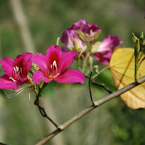 红花羊蹄甲,花大,呈紫红色,可作美丽的观赏树木,是广州主要的庭园树之一,世界各地广泛栽植。