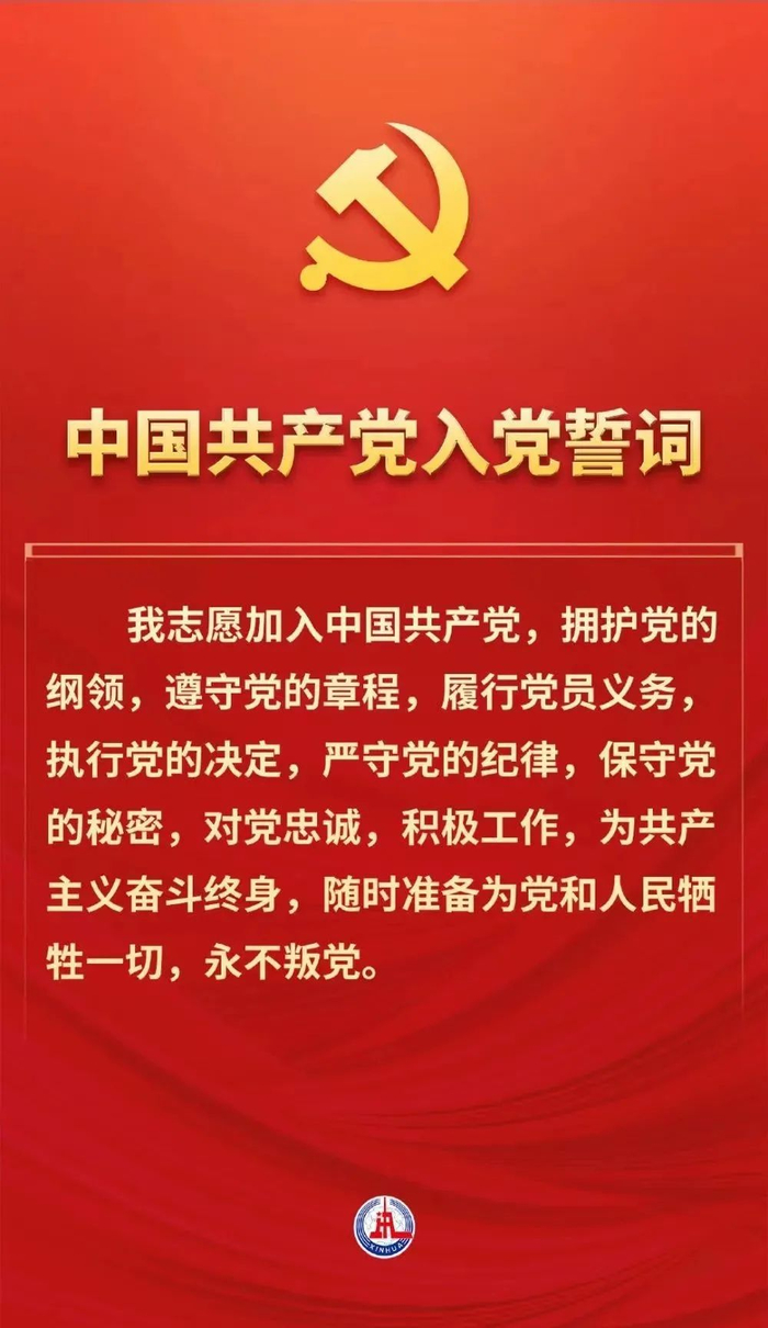 朗诵《入党誓词》,我们找到了答案。“我志愿加入中国共产党,拥护党的纲领,遵守党的章程,履行党员义务,执行党的决定,严守党的纪律,保守党的秘密,对党忠诚,积极工作,为共产主义奋斗终身,随时准备为党和人民牺牲一切,永不叛党。”