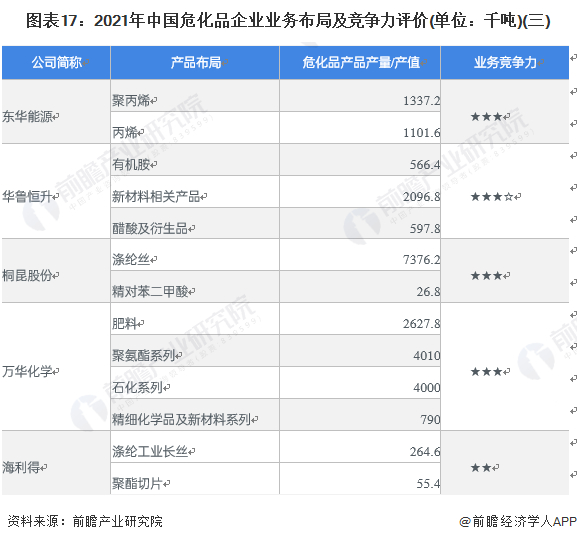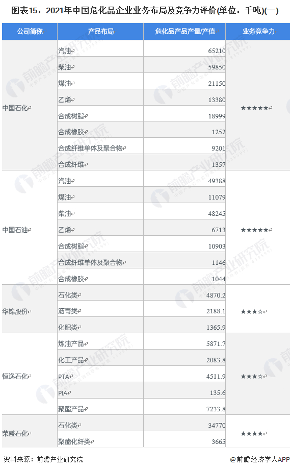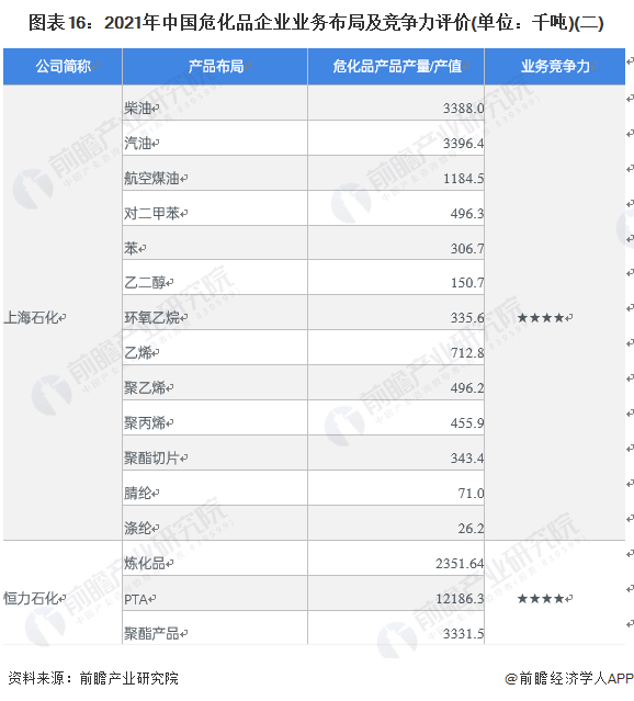 目前,布局了危化品生产业务的上市企业中,中石油、中石化的危化品产品产量遥遥领先于其它企业。危化品产业链上的其它代表性企业业务布局及竞争力情况如下: