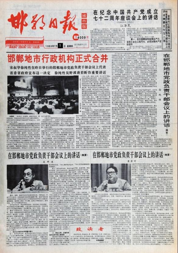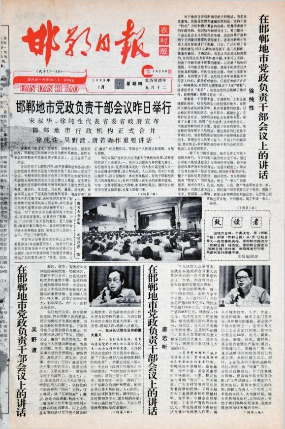 报》农村版。日 原《邯郸日报》改为《邯郸 《邯郸日为 报》城市版,原《邯郸市报》改 并,年月1日地市合 ,71993