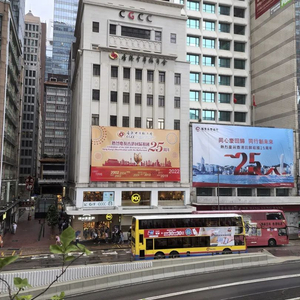 目前,金融服务业占香港GDP比重已增至23%,其还逐步带动周边产业发展,使香港的国际金融中心地位不断得到巩固。图为7月1日时香港中环金融区的街头遍布庆祝回归25周年海报。《财经》记者 焦建/摄