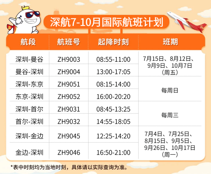 深航7-10月国际航班计划公布!