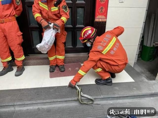 “如果小区里遇到蛇,建议不要去惊扰,同样也是绕开就好了。但若对人员出行造成影响,可以用一些长杆慢慢敲打地面,进行驱赶。家中发现蛇,自行驱赶无效或不知如何处理,可以向消防求助。”杭州消防提醒说。
