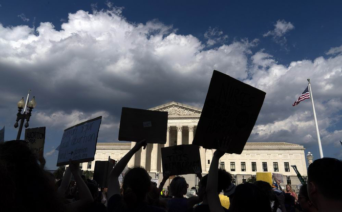 当地时间2022年6月25日,美国华盛顿,堕胎权利活动家在最高法院外抗议。美国最高法院允许各州监管堕胎的裁决,在全美引发了一场疯狂的旅行热潮,人们纷纷将患者引导到仍允许堕胎的州。