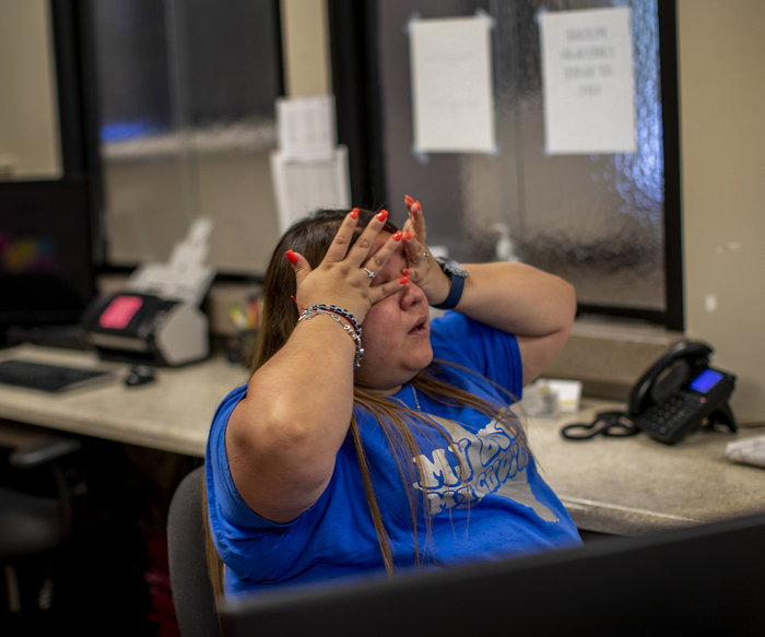 当地时间2022年6月24日,美国得克萨斯州圣安东尼奥,一名工作人员在听到最高法院推翻了罗伊诉韦德案的消息后感到不可置信, 阿拉莫妇女生殖服务中心关闭了堕胎服务。