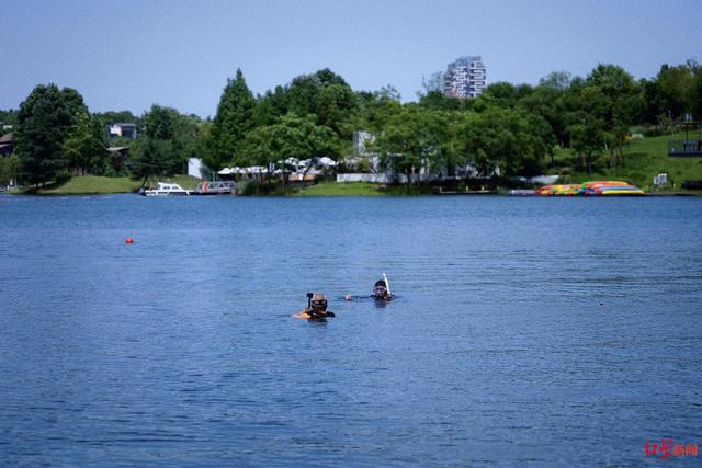 6月底的成都,骄阳似火,麓湖湖面上几乎没有一丝风。但水下,却“暗流涌动”。麓客岛某潜水俱乐部,两名男子身着潜水服,背着氧气瓶,在湖水中缓缓下潜,目送鱼儿游过,水草摆动。