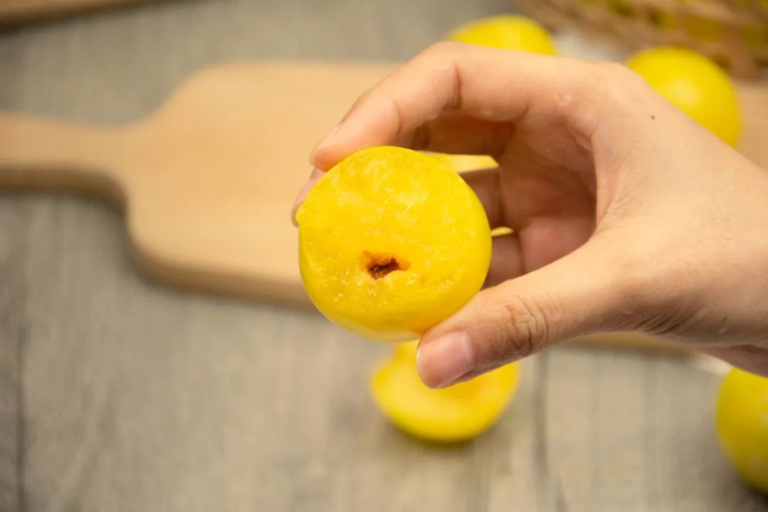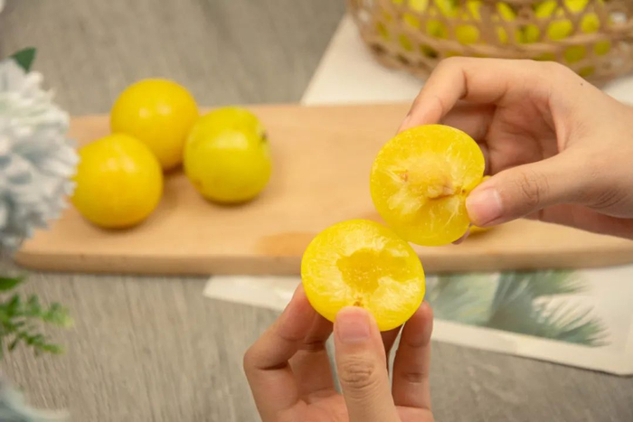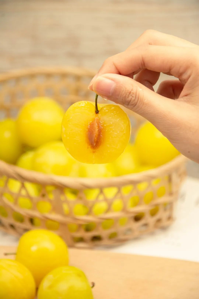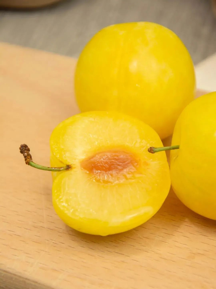不同于常见的李子颜色,桃花李不是紫红色不是绿色,而且少见的金黄色!黄澄澄的果肉令人垂涎欲滴!