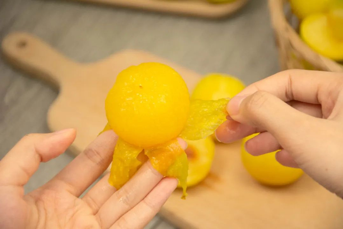 除了甜度优势,桃花李还是能剥皮吃的李子。它果皮很薄,撕开皮全程顺畅无阻,还很解压!