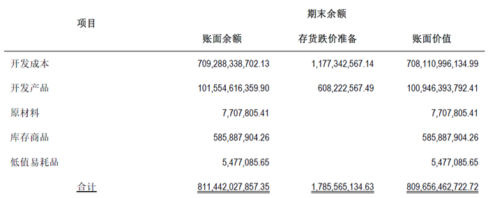 与此同时,保利发展存货稳步增长。据年报显示,公司2021年期末存货账面余额约为8114.42亿元,同时期内计提了约17.86亿元的跌价准备,期末存货账面价值约为8096.56亿元,同比增长9.2%。其中,存货跌价准备主要来自开发成本。